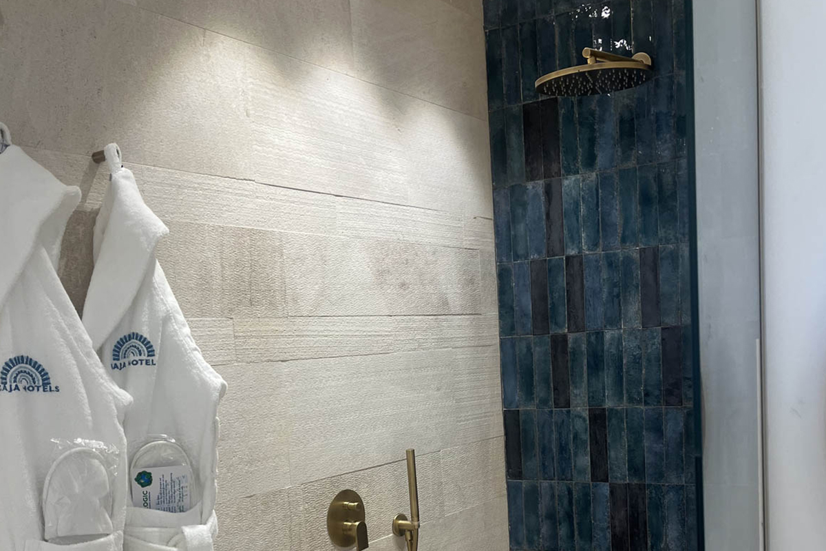 Enfin, les Junior Suites Panoramiques – de 31 à 37 m² – sont de véritables open spaces spacieux et élégants, avec un lit king-size, un coin salon avec canapé et bureau, une salle de bain avec douche à l’italienne, et une grande terrasse en front de mer meublée avec canapé et table : une option exclusive pour ceux qui recherchent confort et paysages à couper le souffle.