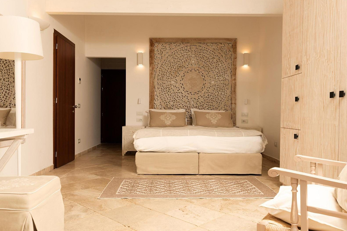 Les lignes d'inspiration arabe qui font la renommée de la structure sont élégamment évoquées dans les intérieurs, caractérisés par un style frais et le raffinement des meubles et des tissus.