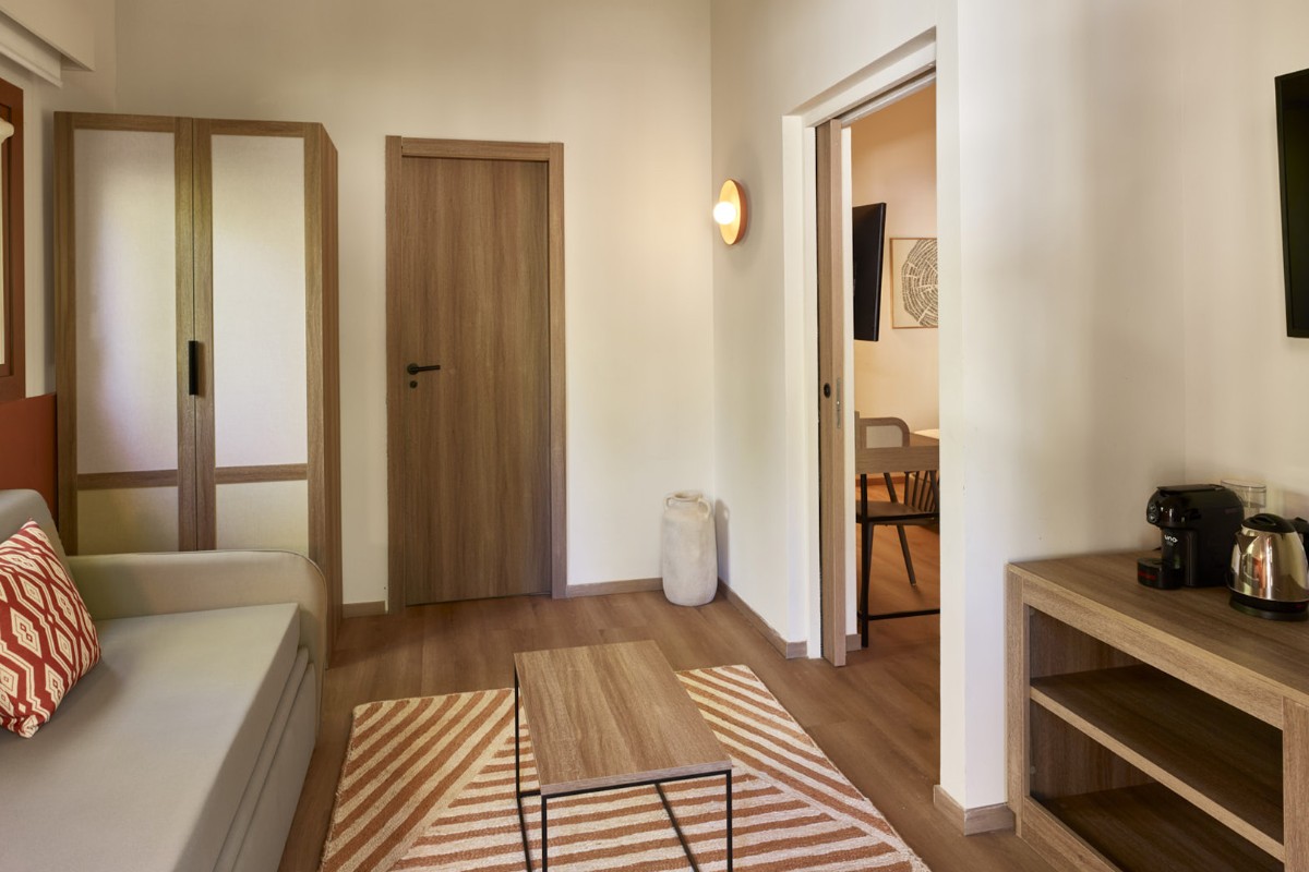 Rooms for 2 guests, in the most central area of the resort, located on the first or second floor with a small balcony. They also have a kettle with tea and herbal teas, espresso machine, open mini bar (water, 2 soft drinks and beer), rental of one beach towel per person (from 3 years) with daily change.