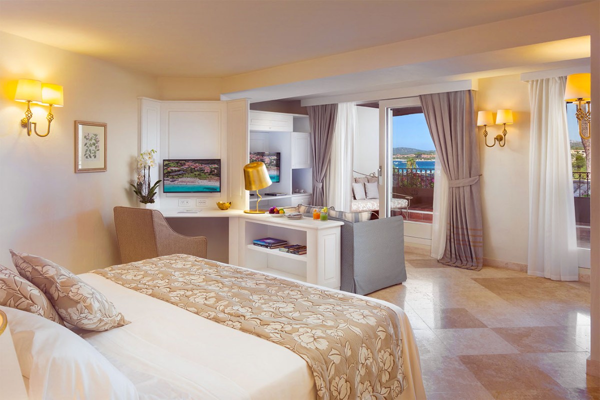 Viele der 130 Zimmer des Abi d’Oru Beach Hotel & Spa haben Ausblick auf das Meer. Die Einrichtung ist traditionell/modern sardisch mit warmen Farben und einladender Atmosphäre.