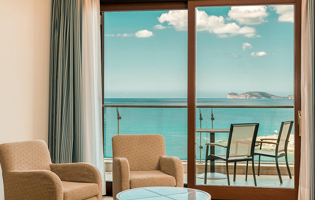 Zimmer mit Balkon und Blick auf den Golf, hat ein Kingsize-Bett und ist ausgestattet mit: Klimaanlage, ...»»Junior Suite